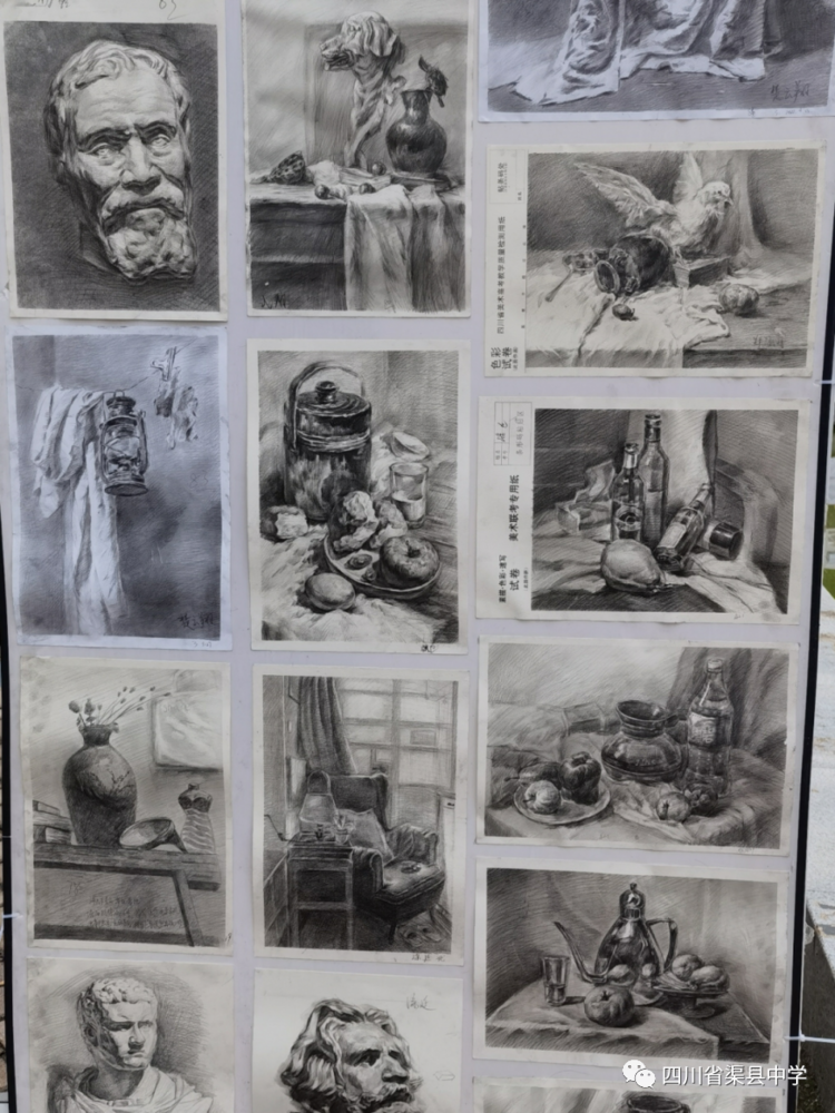 书画无声歌盛世,笔墨有情绘华章。书画,视觉审美之艺术,中国传统文化之精粹。此次书画展,是美术组全体老师向学校提交的一堂汇报课,展示了我校素质教育成果。此次展览征集了全校师生精心创作的书画作品150余幅。同学们创作出了讴歌党、讴歌祖国、讴歌人民、讴歌新时代和美好校园生活的书画作品,也有不少作品从不同视角,用多种表现形式抒发对渠县中学的美好祝福。