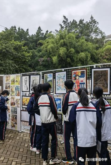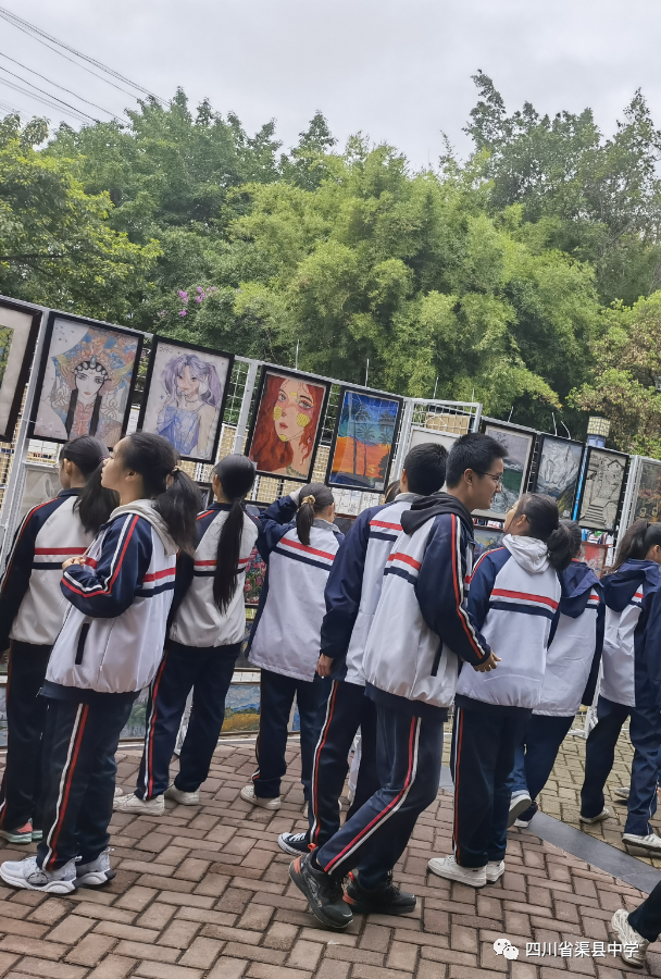展览是交流,更是检阅,渠县中学党委书记曹阳携我校所有行政领导、年级组长到学校内花园参观本次书画展,曹书记充分肯定了本次书画展,曹书记说:艺术是一个学校重要的部分,不可或缺。“艺术育德,艺术育智”,学校培养人才,需五育并举,培养德艺双馨的优秀人才。一个学校需要丝竹之音,需要笔墨之韵。副校长敬永香、纪委书记刘万锋、副校长魏华、副校长张茂盛及一些中层干部也对美术组全体老师提出建议和要求,希望老师们能夯实自己的业务能力,带领更多的学生热爱艺术,热爱生活,创作出更多高质量高水平的作品,积极参与各级赛事,并为学校取得荣誉。在观展过程中,曹书记与学生亲切交流对绘画作品的感受,肯定了孩子们对绘画的理解和对美的表达形式。观者与作者,穿越点化之跃动,直达心灵之化境,幸甚至哉!