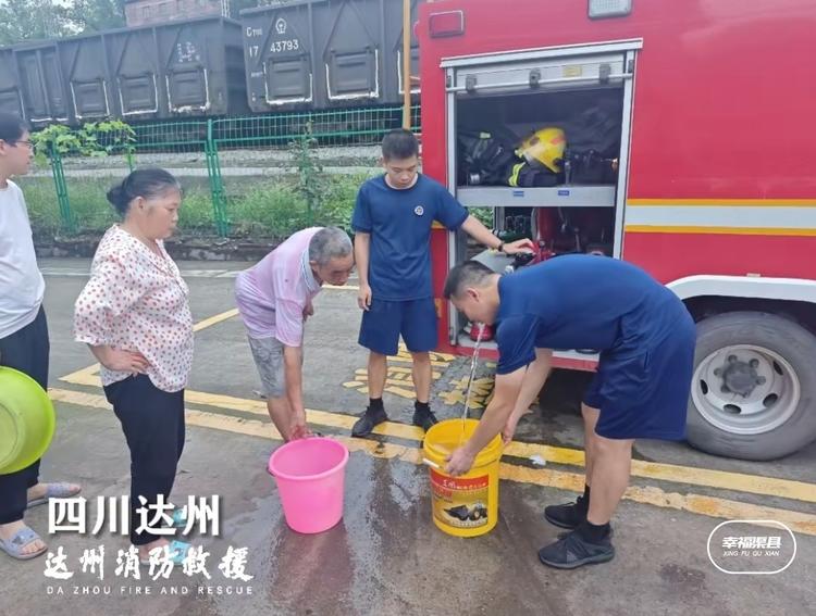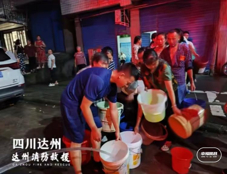 近日,受前期持续强降雨影响达州河市镇自来水主管道损坏,5000户居民用水告急!达州消防 “蓝朋友”送水上门,解决群众用水燃眉之急。